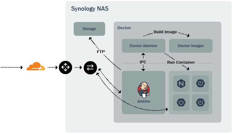 먼저 Docker 도입의 주된 이유는 Lightsail 서버와 달리 NAS 서버에는 이미 여러 기능들이 Host에 실행되고 있는 상태여서 보안성이나 시스템의 안정성의 이유로 격리된 환경 구성이 필요했다.